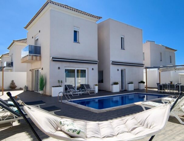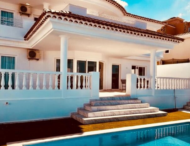 A true family sized villa with a large heated pool, jacuzzi, pool side shower, super large games room. 10 guests 4 bedrooms 5 beds 4.5 bathrooms