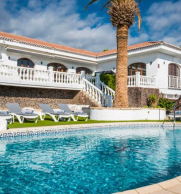 Large stylish Costa Adeje pool villa in the warm sunny south of Tenerife Set in a lovely residential area with breathtakingly beautiful ocean and sunset views but only 10 minutes from the beach, shops and restaurants. 14 guests, 5 bedrooms, 7 beds, 4.5 bathrooms